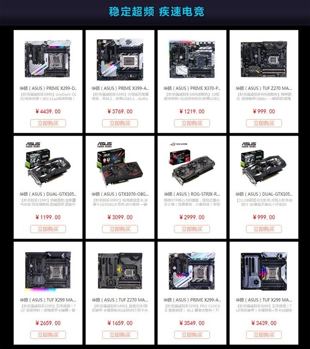 分的来看,此次华硕从板11.11开门红京东大促长短常给力的,不只带来了更实惠的价钱,并且还带来了很是多的精品。既价廉又物美,11.11攒机来那里绝对值!