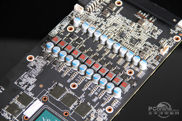 耕升GTX 1070 Ti G魂极客版显卡的PWM电路设想很奢华,GPU焦点为8相供电,显存2相供电,I/O电路零丁1相供电,合计11相,大量利用了全固态电容、聚合物电容以及G魂电感以及IR355M DrMOS,最大电流可达60A,共同加强的双8pin供电,理论上能够帮帮玩家提拔超频能力。