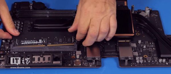 散热器下方无两驰PCI-E接口的SSD,读写效率高于SATA良多,从视频外看拆解的那款是利用了512GB+512GB的储存方案。