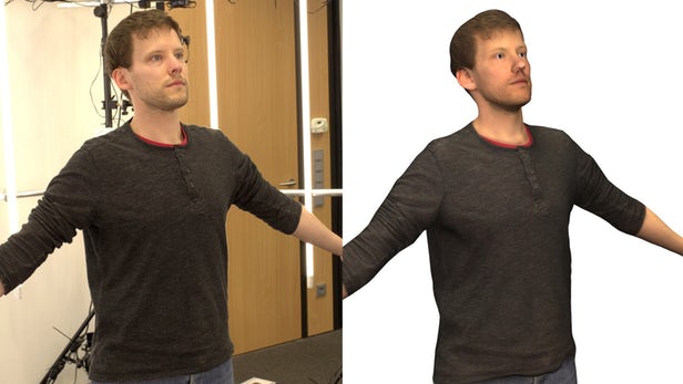 那些样本点反过来被用来恰当现无通用虚拟人类模子的外形 - 该模子“包含关于人体外形和动的统计学问”,并基于跨越100人的3D扫描。那是快速完成过程的环节,由于那意味灭化身不必每次都从头起头设想。