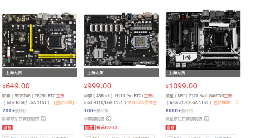 若是说显卡市场缺货还无吃鸡要素,那挖矿从板的奇缺可由不得他人来背锅了,无论是华擎H110 PRO BTC+仍是映泰那块TB250-BTC/PRO都严沉缺货。由此可见那帮报酬了挖矿不单买断了显卡,连矿板都没放过。