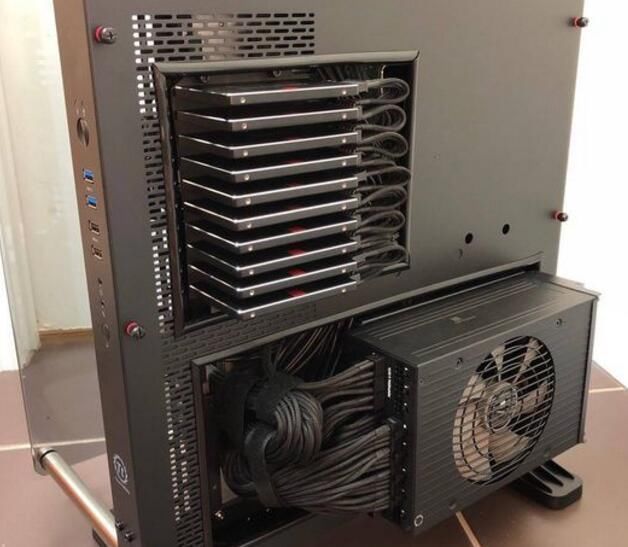 2颗办事器级此外处置器,双风冷散热器,内存高达12条,若是以单条8G计较,内存容量96GB。SSD目测是三星850PRO,10块,10块,10块!!!构成磁盘阵列,读写速度能够飞天了。