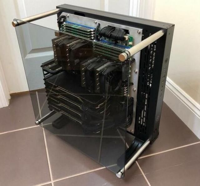 八核E5拆上去,四路Titan抱回家,要晓得那是四路Titan V,单块显卡,你晓得要几多钱不?
