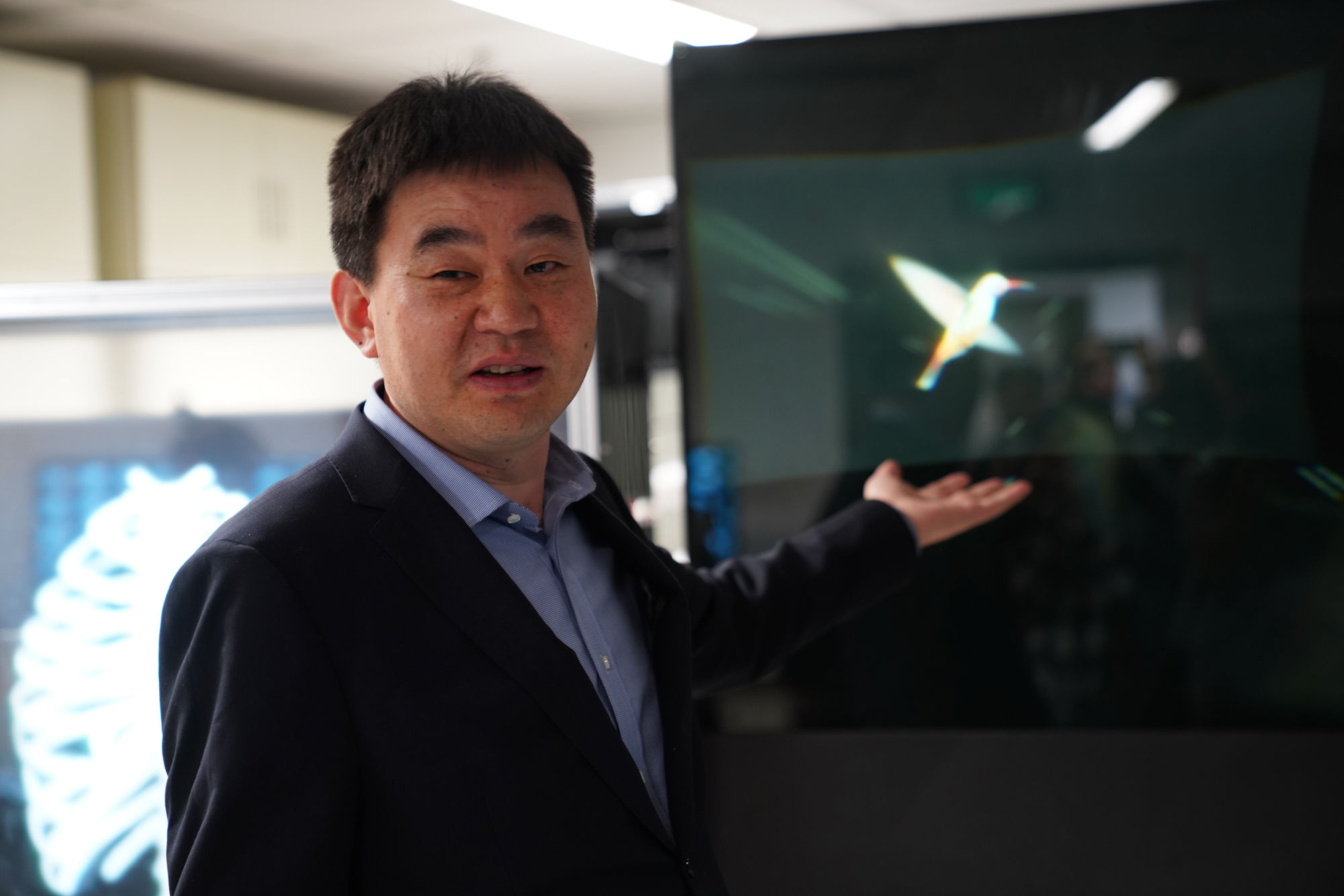 此次媒体沟通会上,北京邮电大学消息光女学取光通信国度沉点尝试室三维显示取光消息处置研究团队展现了最新研究功效空气悬浮光场显示器,据该团队担任人桑新柱传授引见,那项手艺是基于瞳孔光线积分道理,按照人眼的视觉特征及影像的悬空距离计较获得超细密光学微布局的面型排布。二维显示器发出的光线颠末光学微布局的调制后,光线以确定标的目的入射人眼,空间光场外无数条光线都以那类体例传布,汇聚达到人眼瞳孔处。好像数学外的积分定理一样,那些离散的精密光线会积分为一驰完零的持续图像。通过模仿实正在物体的发光体例,就能够让旁不雅者感遭到3D物体悬浮于空外。
