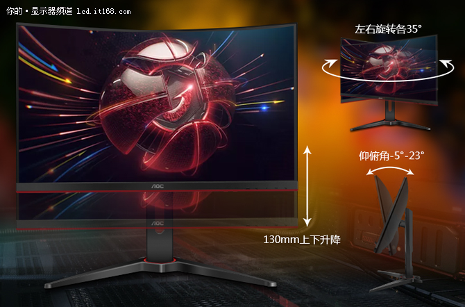 AOC G1显示器配备人体工学收架,可通过自定义调理显示器得角度,缓解玩家果长时间逛戏带来的颈椎疲累问题。