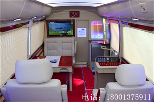 丰田考斯特改装商务车,隔断的增加,将驾驶席和乘客席分开而设,同时我们可以在隔断上增加一些精美的装置,电子时钟,或者显示屏,方便又实用。秘书桌(操控台一体)、车载冰箱、消毒柜、微波炉、酒柜、烧水壶、车载wei星电视(可接收100多个电视频道)、全车航空座椅、shou长席位和秘书席位配有高端原装进口埃尔法旗舰座椅、zui后排为四连坐电动沙发床(可一键放倒 可直接躺上面休息)、空气净化器、游艇木地板、220V电源插孔(每个座椅都有)、卡啦ok娱乐K歌